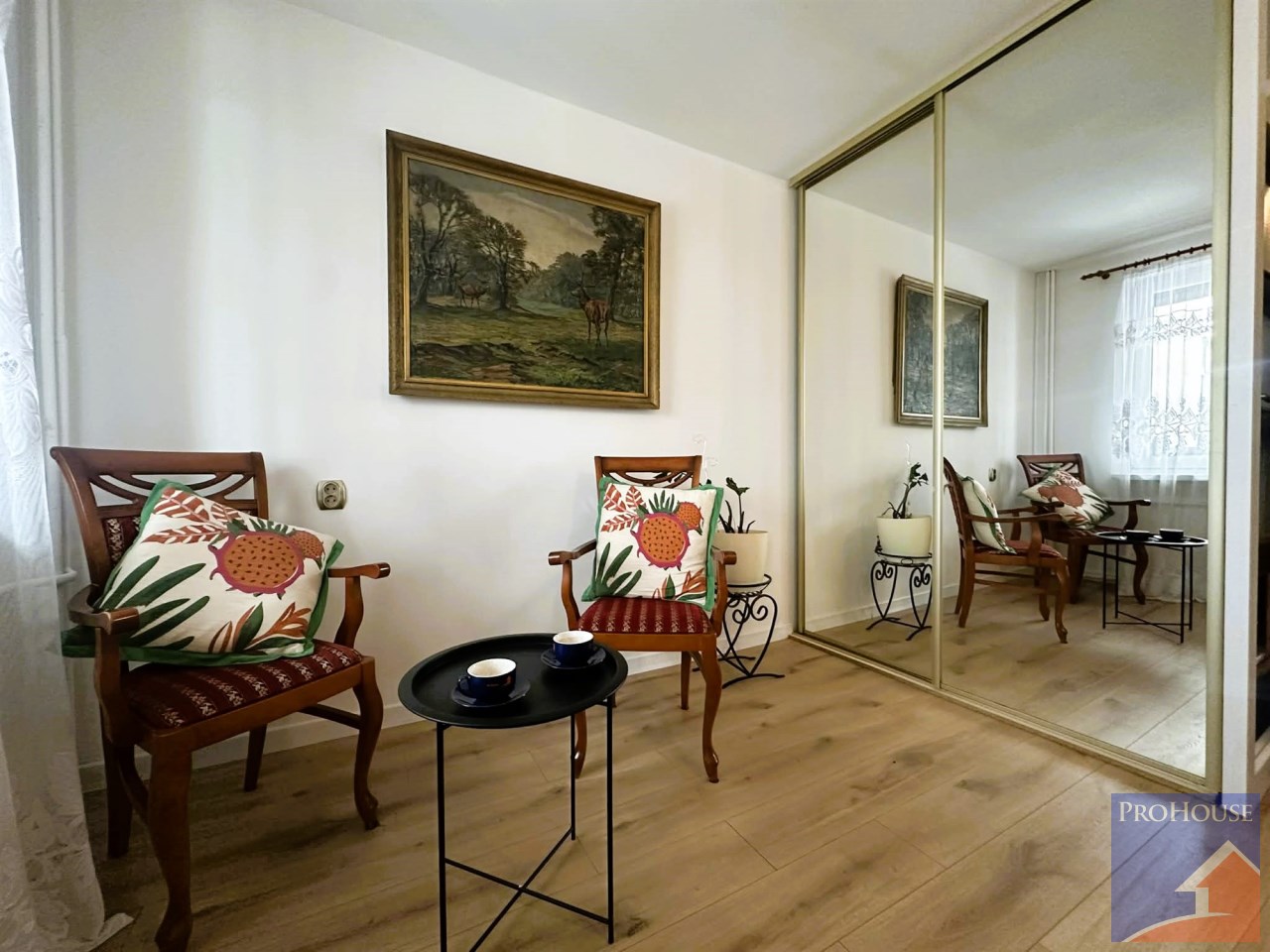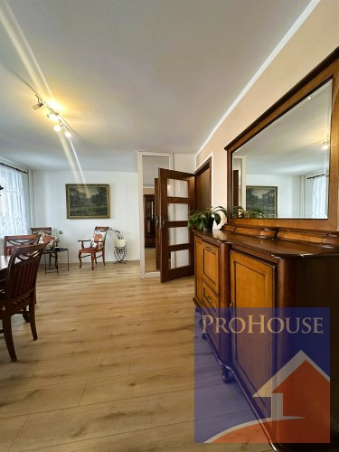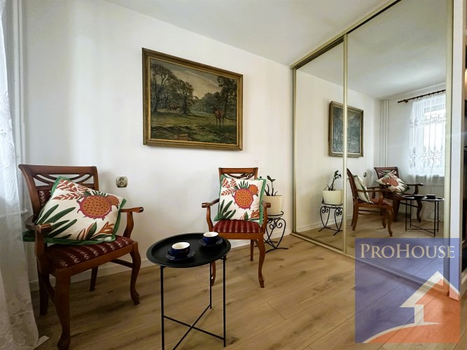 - Pokój dzienny: Przestronny i częściowo umeblowany, wyposażony w pojemną szafę w zabudowie. Z pokoju wychodzi się na zabudowany balkon, który zapewnia dodatkową przestrzeń i ciszę. Okno wychodzi na spokojny dziedziniec.