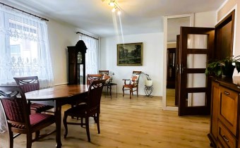 - Kuchnia: Oddzielna, jasna (z oknem wychodzącym na ulicę), umeblowana i wyposażona w niezbędny sprzęt AGD: lodówkę, kuchenkę gazową oraz okap